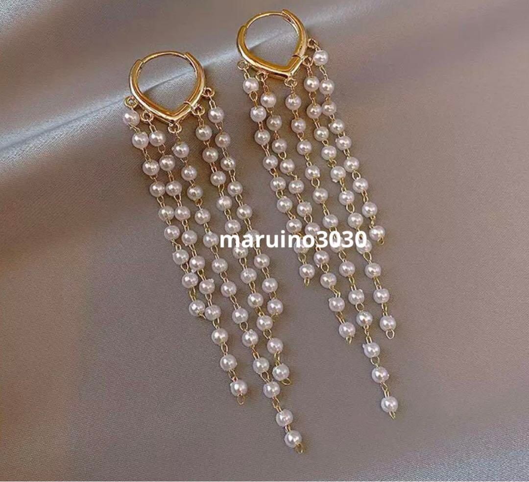 一点限り★ゴールド ピアス パール ロングピアス s925 海外 ウエディング