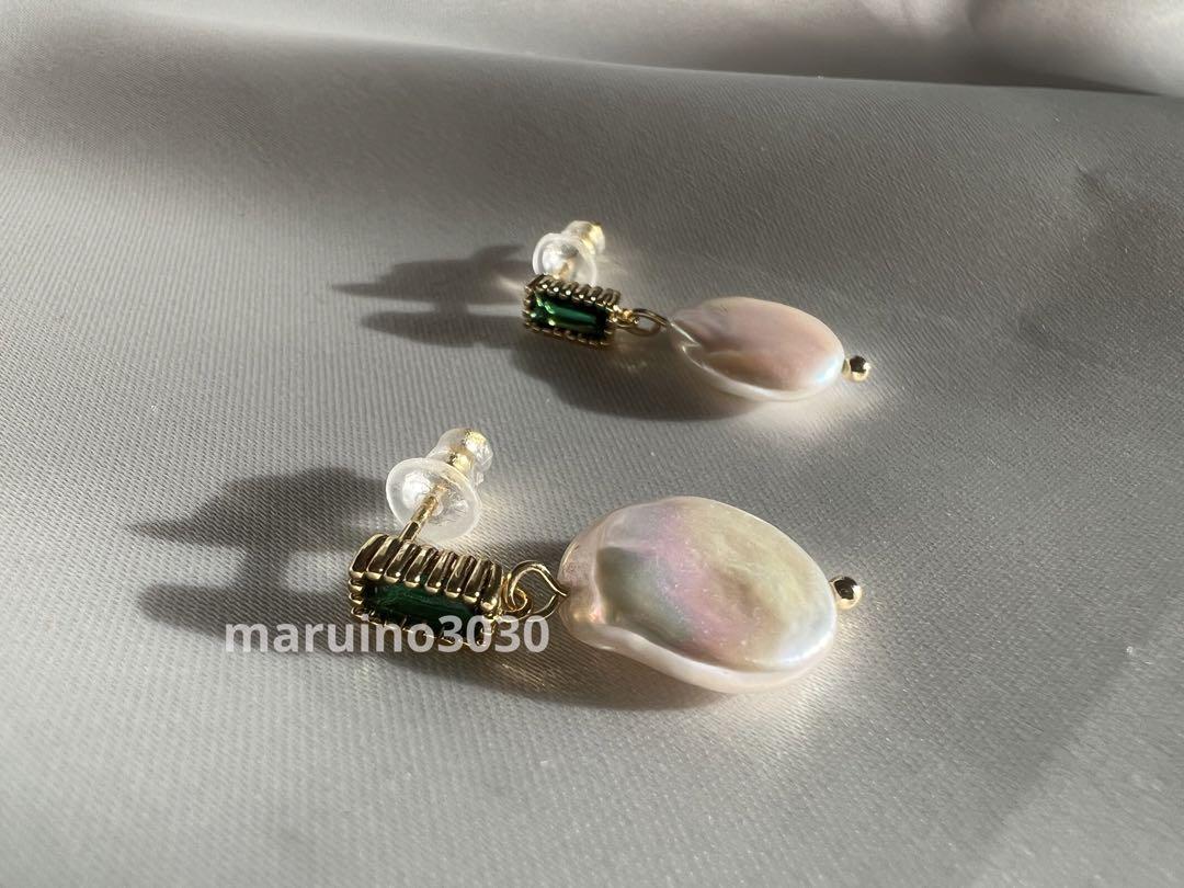 ・gold ×pearl × green pierce ×1